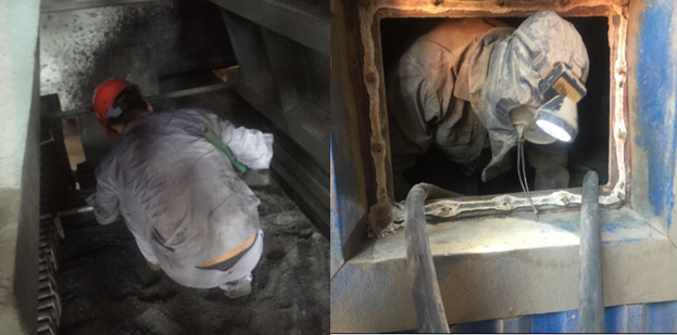 他们为了环保本部的生产正常运行,冒着酷暑,在常人难以想象的恶劣环境下对设备进行检查,不到5分钟的时间,整个人早已浸透在汗水中,又不到一会儿,衣服被高温重新烤干,把设备修好,整个人湿了干,干了湿要好几次。当发现我在给他们拍照时,可爱的员工们不让拍,因为他们很朴实,所以有的照片我都是背向偷拍的。